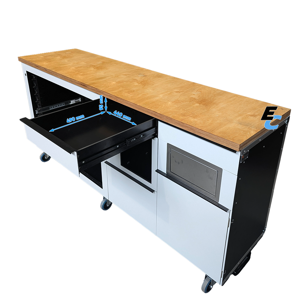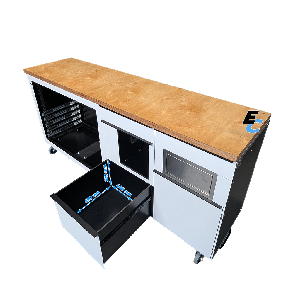 • Tiroirs de précision (L x P x H) : 2 tiroirs de 490 x 440 x 95 mm et 1 grand tiroir de 490 x 440 x 320 mm.