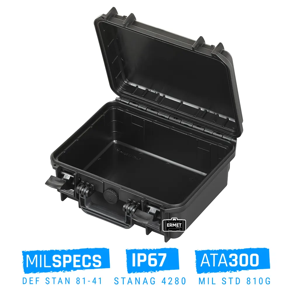 La mallette antichocs et étanche Ermet 237 fait partie de notre gamme étanche à prix bas. En effet, elle est conçue pour offrir une protection optimale contre l’eau, la poussière et les impacts lors du transport de matériels fragiles et coûteux. De plus, les certifications IP67, ATA300 et militaires rendent cette valise étanche de transport adaptée à un large domaine d’activité :
